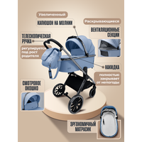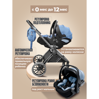 | Комплектация | адаптеры для крепления автокресла, анатомическая подушка, антимоскитная сетка, бампер, держатель для бутылочки, дождевик, капюшон, матрас, муфта для рук, накидка на ноги, переноска, подстаканник, рюкзак, солнцезащитный козырек, сумка, теплый конверт |