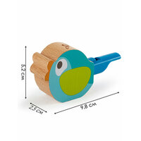 Комплектация: игрушка-свистулька в виде птички Материал: дерево (бук), пластик. Размер игрушки: 9,8х2,5х5,2 см. Рекомендовано для девочек и мальчиков от 3 лет.