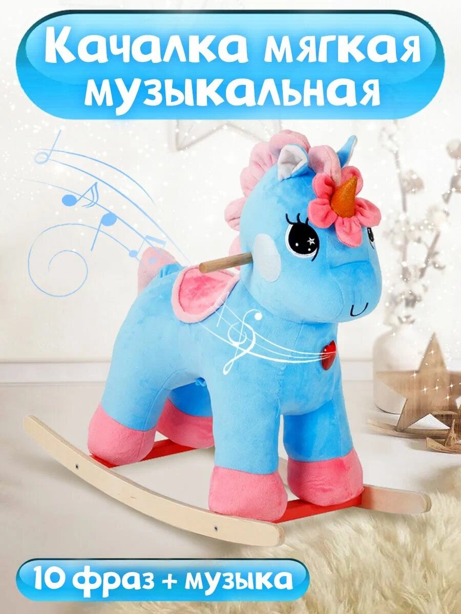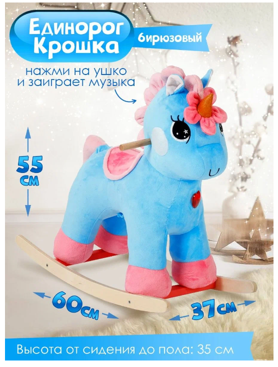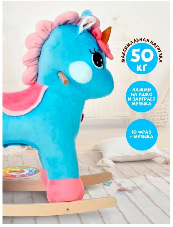 Купить Детская музыкальная мягкая качалка Тутси «Единорог Крошка KSY » на деревянном каркасе, (бирюзовый) 779-2022 с доставкой по всей России.
