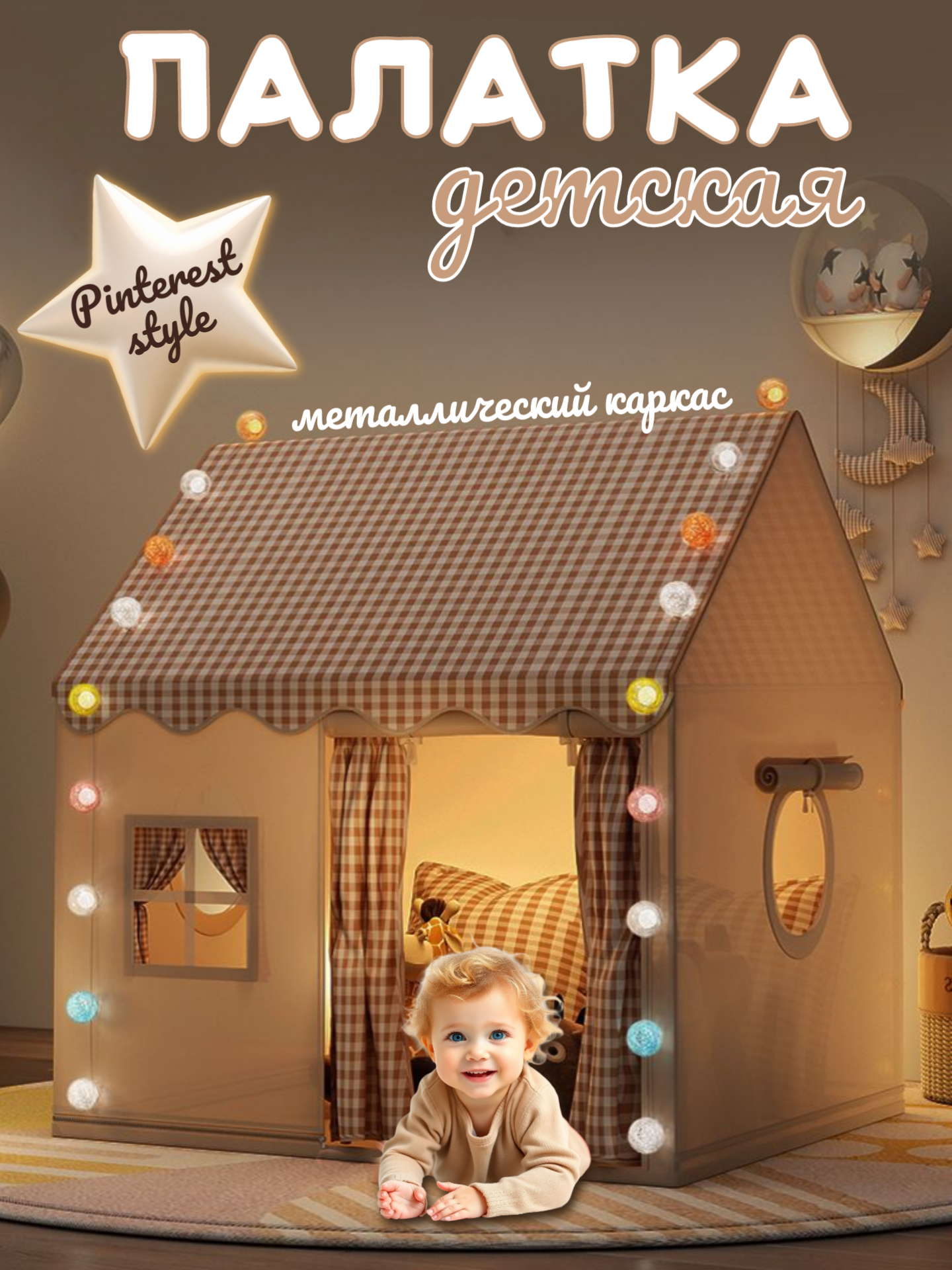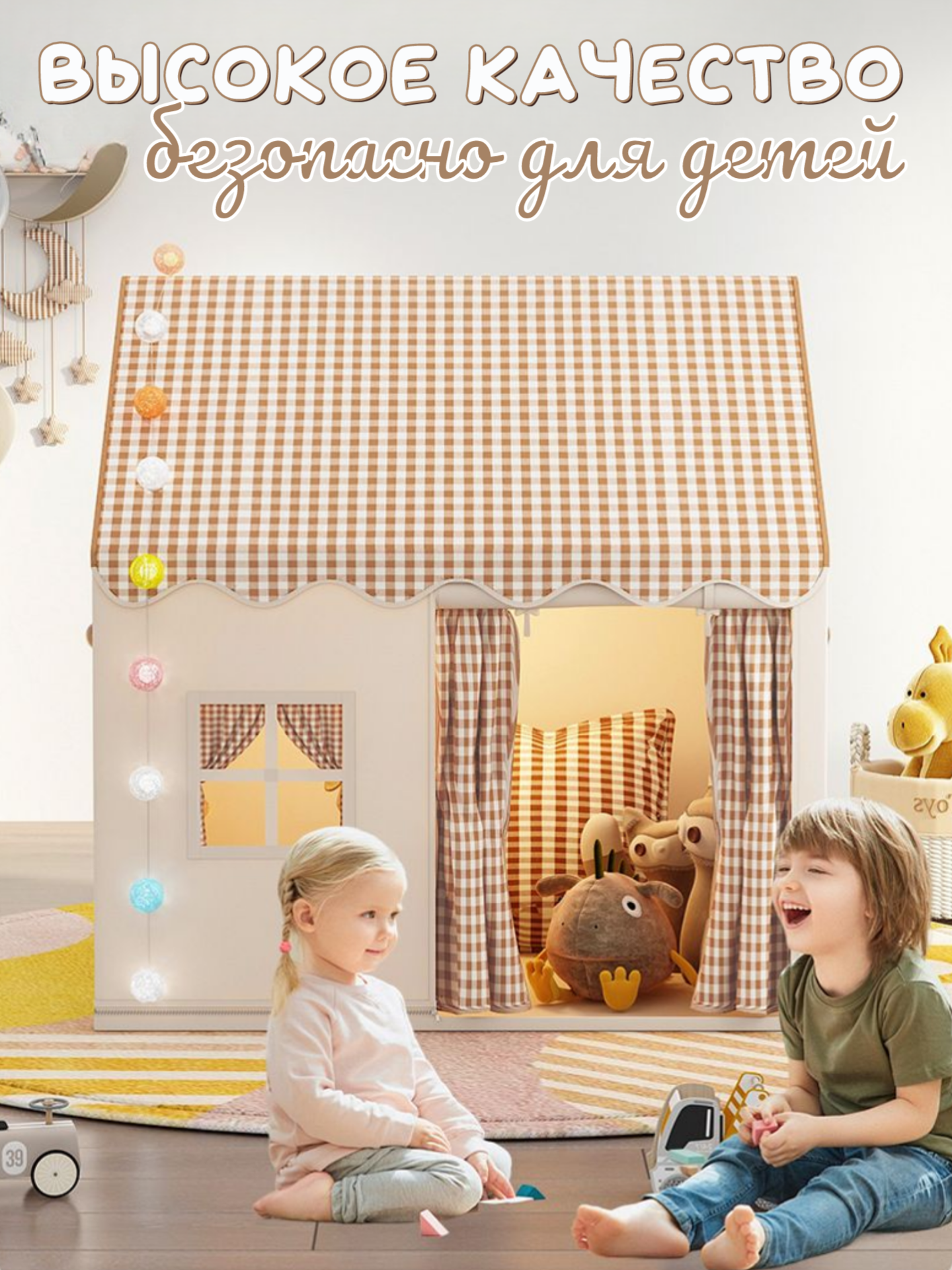 Купить Детская игровая палатка домик бежевый для мальчиков и девочек с доставкой по всей России.