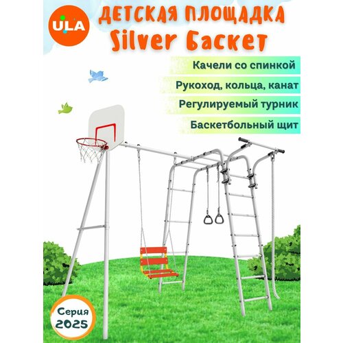 Детский спортивный комплекс "Silver Баскет" предназначен для детей от 3-х лет. Этот уникальный игровой комплекс в стильном сером цвете и удобными качелями не только украсит ваш двор, но и подарит вашим детям часы радости и веселья. Гимнастические кольца и канат позволят детям развивать силу, ловкость и координацию. Качели подарят незабываемые моменты радости и свободы. Ваш ребенок сможет часами играть, развивая физическую активность и уверенность в себе! Баскетбольный щит с кольцом — это незаменимый элемент игры в баскетбол. Щит выполнен из прочного и устойчивого к воздействиям окружающей среды материала, что гарантирует его долговечность. Благодаря специальной конструкции, он легко устанавливается и надежно фиксируется на уличном комплексе. Благодаря продуманному дизайну и качественным материалам, наш комплекс не только способствует физическому развитию детей, но и привносит уютную атмосферу игр и веселья на свежем воздухе. Габаритные размеры: длина - 2,35 м ширина – 1,90 м высота - 2,40 м Максимальная нагрузка на комплекс: 100 кг Максимальная нагрузка на навесное оборудование: 50 кг Комплектация: - 2 шведские стенки - турник регулируемый по высоте - рукоход - канат - кольца гимнастические - баскетбольный щит с кольцом - качели со спинкой на цепях
