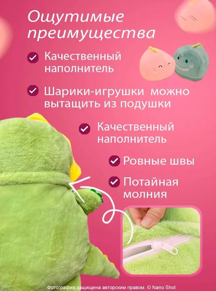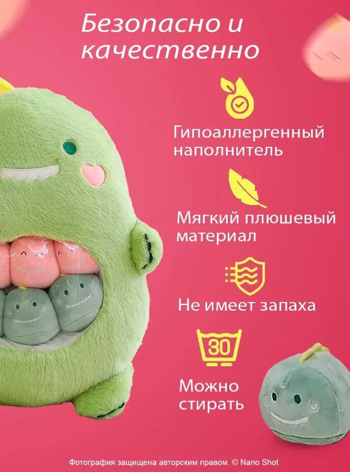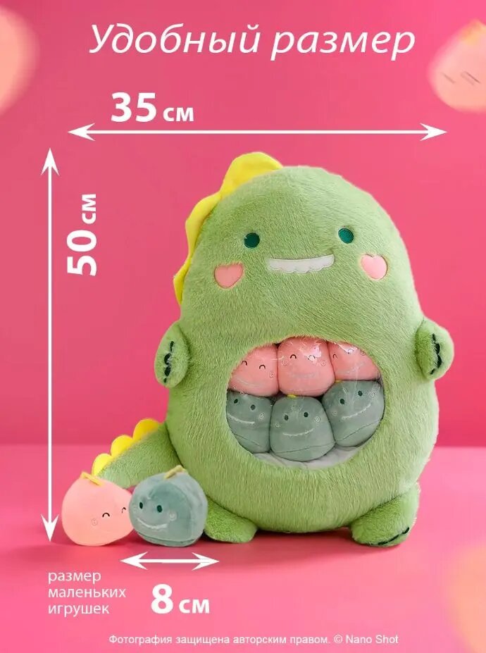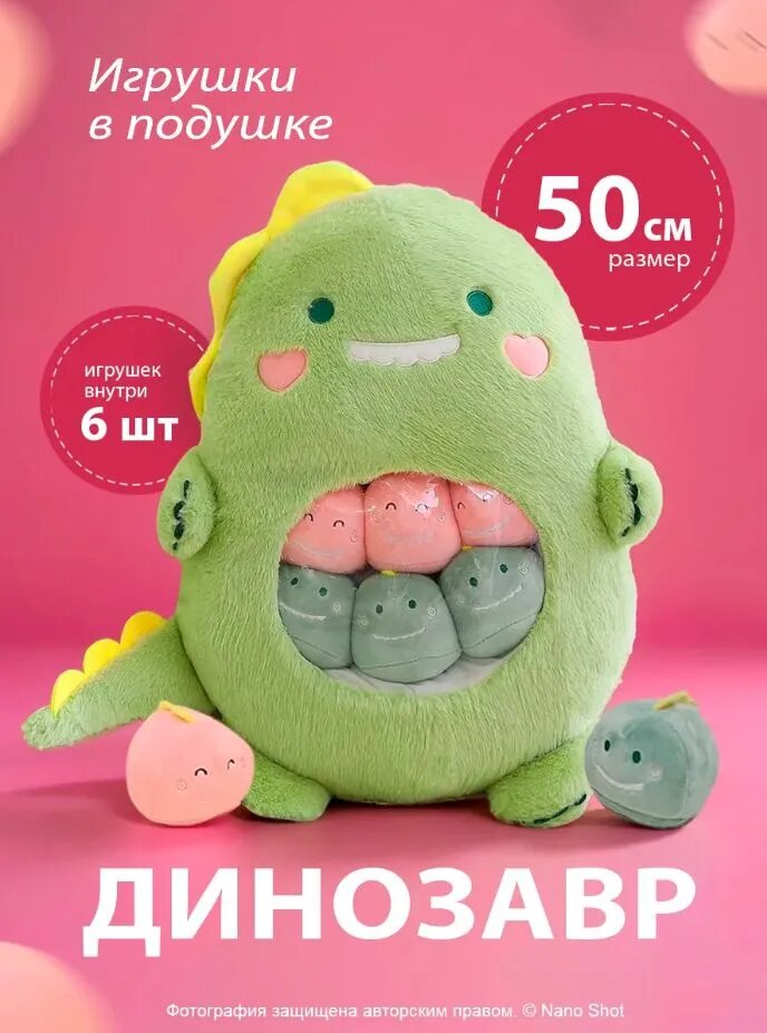 Детская плюшевая мягкая игрушка подушка сплюшка Nano Shot Динозавр, зеленый 50 см: сравнение цен, характеристики, фото, актуальное наличие и цены.