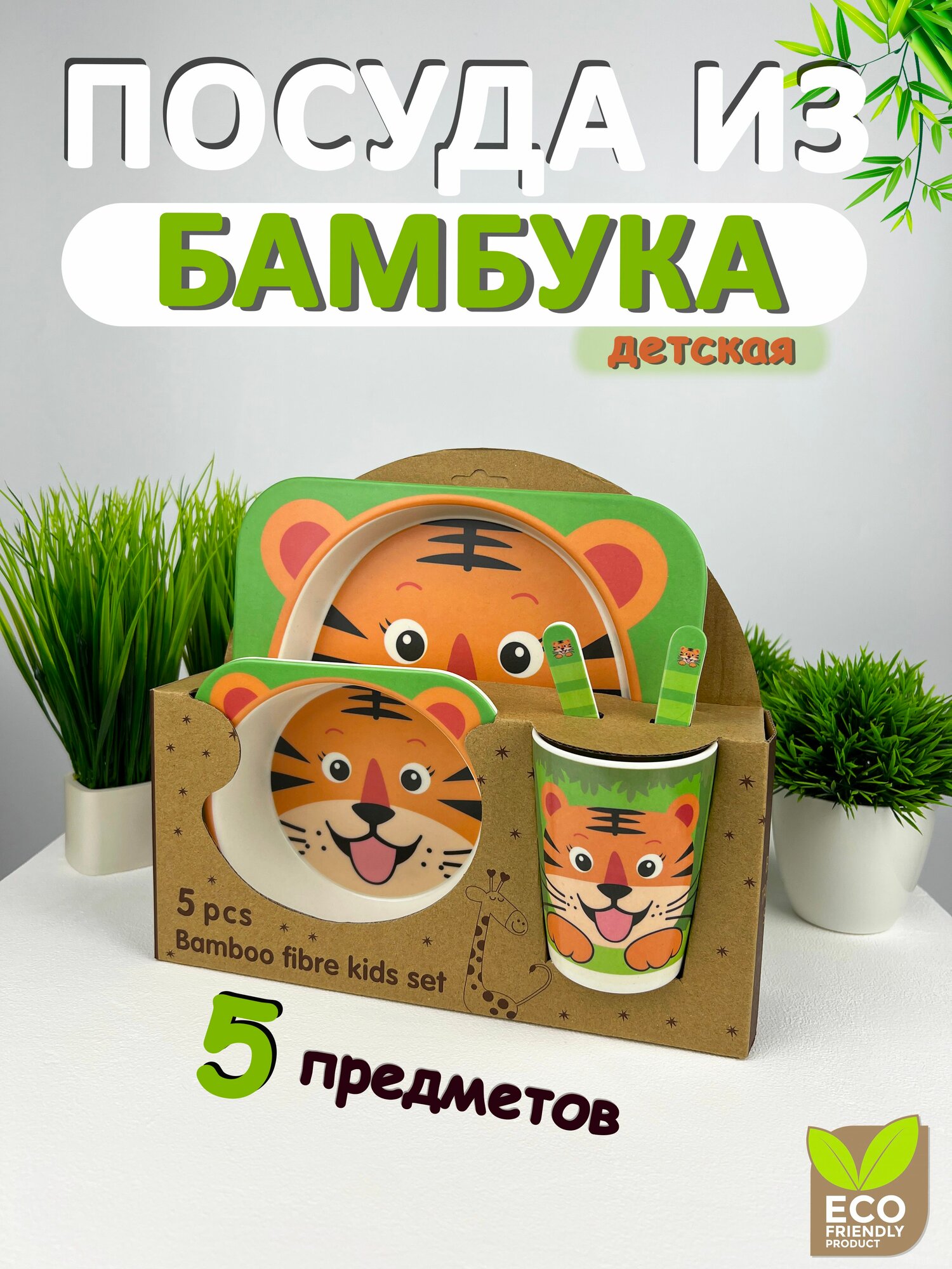 Детская посуда из бамбукового волокна, 5 предметов, Подарочный набор посуды для кормления малышей с Тигренком: сравнение цен, характеристики, фото, актуальное наличие и цены.