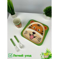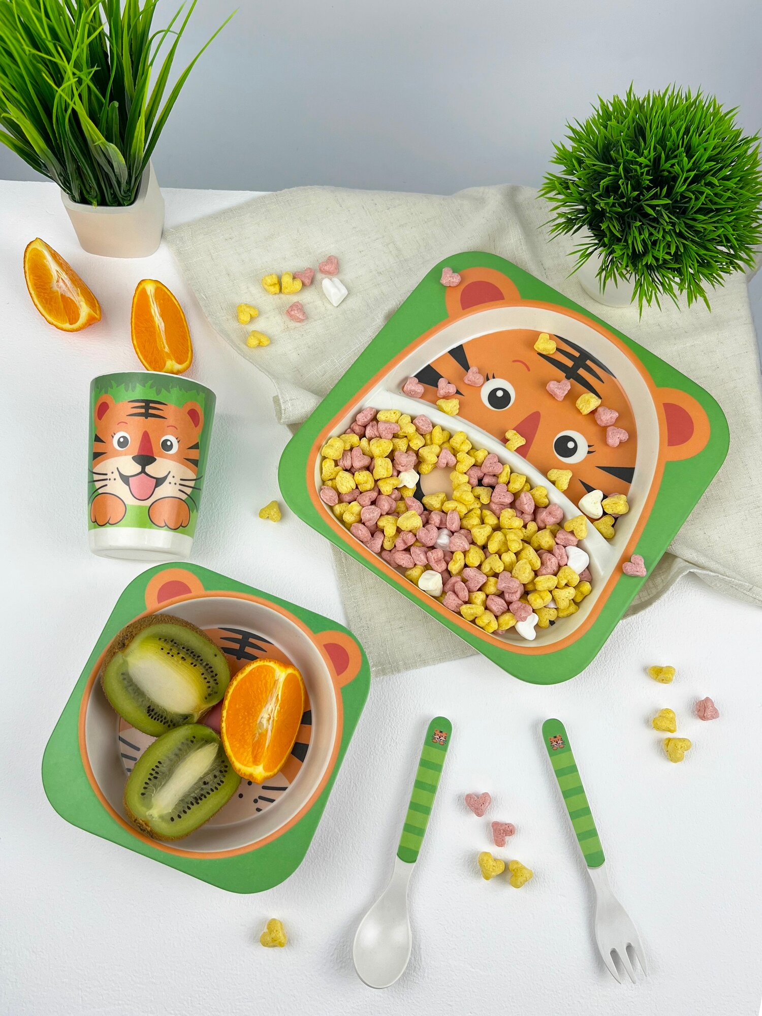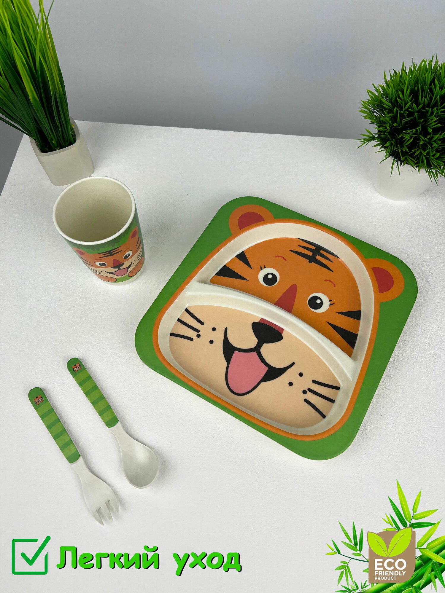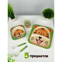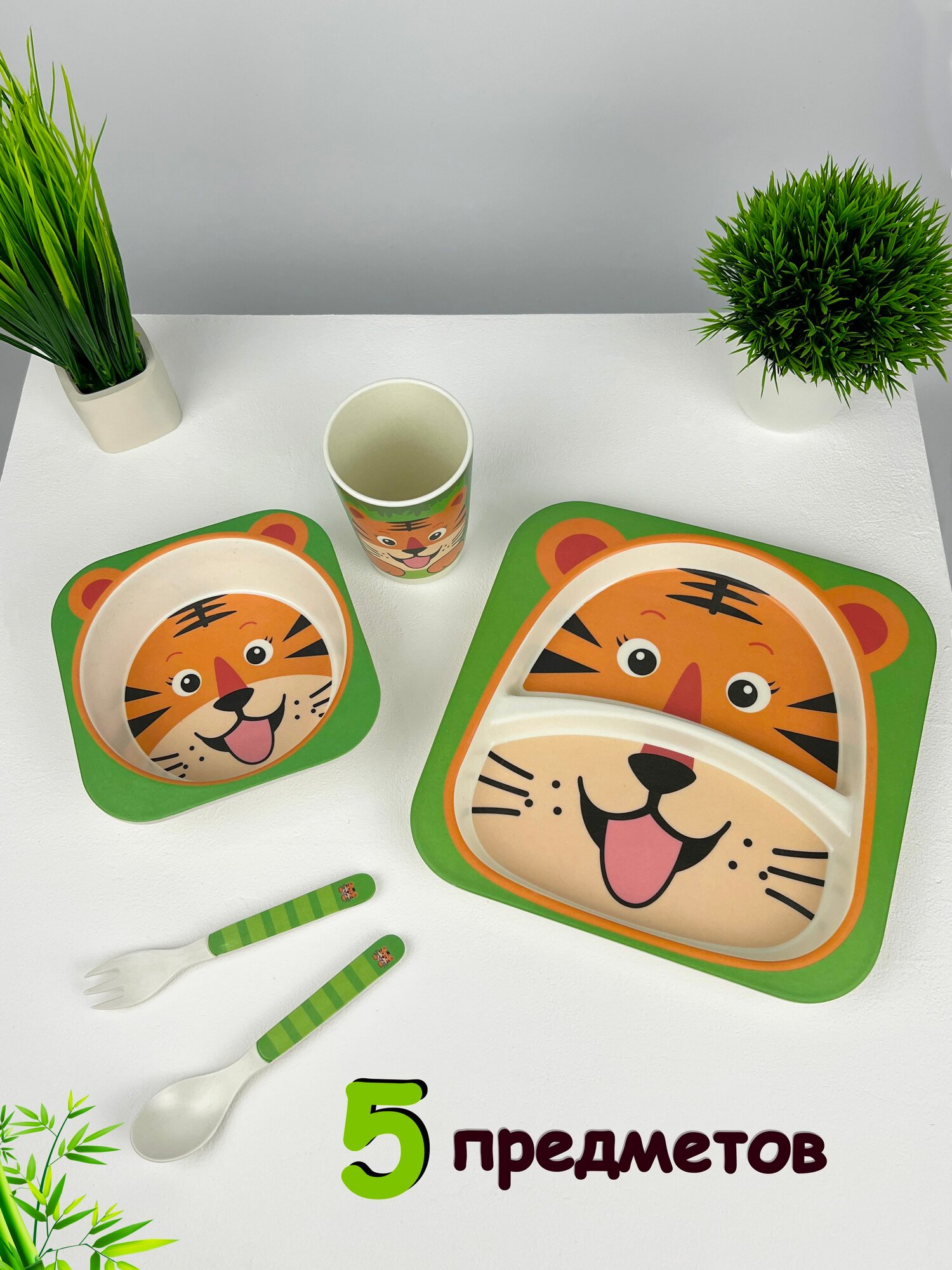 Купить Детская посуда из бамбукового волокна, 5 предметов, Подарочный набор посуды для кормления малышей с Тигренком с доставкой по всей России.