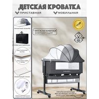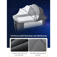 | Комплектация | корзинка для вещей; москитный козырек; матрас; регулируемые колёсики; детская приставная кровать; сумка для переноски |