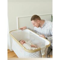 Купить Детская приставная кроватка трансформер для новорожденного Prima, цвет бежевый с доставкой по всей России.