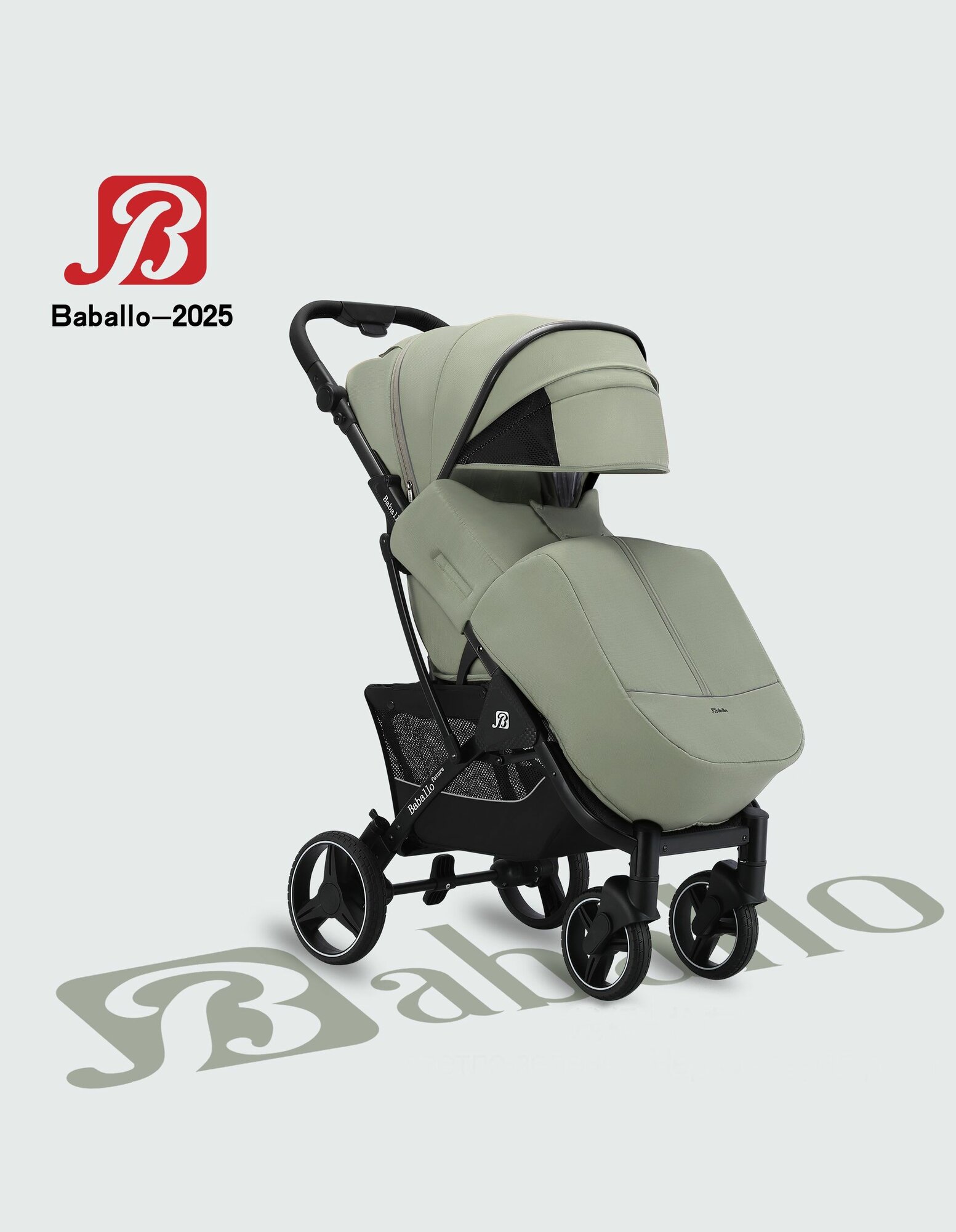 Купить Детская прогулочная коляска Babalo future 2025 NEW Светло-зеленая, Рама черная, механическая спинка, сумка в комплекте с доставкой по всей России.