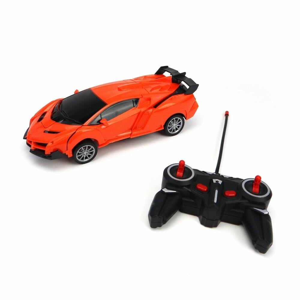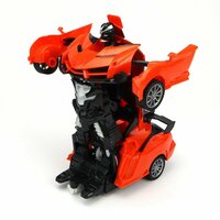 Игрушка на радиоуправлении — Робот-трансформером 2 в1! Это не просто детская машинка на радиоуправлении, а настоящая находка для маленьких поклонников трансформеров, размеры машинки 21х10х7 см. Каждый мальчик мечтает о таком роботе трансформере, который может трансформироваться из стильной машинки в мощного робота. Наш робот трансформер на радиоуправлении станет идеальным подарком для мальчиков. Эта быстрая машинка на пульте управления гарантирует увлекательные гонки. Механизм машинки позволяет развивать ей высокую скорость. Детская машинка легко превращается в робота трансформера одним нажатием - одной кнопки на пульте управления. Размер робота 20х10х16 см. С помощью дистанционного пульта управления машинка может двигаться во всех направлениях - вперед, назад, вправо и влево. При этом ездить может как машинка, так и робот. На нижней части корпуса игрушки трансформера установлен световой индикатор, который горит и мигает во время движения. Корпус машинки выполнен из качественного безопасного ABS пластика. Прорезиненные колёса обеспечивают отличное сцепление с поверхностью для быстрой езды и лёгкого торможения. Для полноценной игры с машинкой потребуется дополнительно приобрести 5 батареек АА (в пульт управления 4 ГГц - 2 штуки, в машинку - 3 штуки), в комплект с игрушкой батарейки не входят. Игрушки для детей на радиоуправлении становятся все более популярными, и наш трансформер на радиоуправлении не исключение! Робот трансформер для мальчика — это не просто игрушка, а друг, который всегда готов к приключениям. На пульте дистанционного управления расположены 2 кнопки, однако функциональна только одна, которая отвечает за трансформацию машинки. Левая кнопка НЕ ИМЕЕТ ФУНКЦИОНАЛА. Машинка робот трансформер станет прекрасным подарком на день рождения и Новый год. Робот трансформер игрушка для мальчиков упакована в красивую коробку (24х13х8 см) и идеально подходит в подарок.