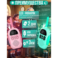 Детская рация, набор, 2 шт, рации розовая и голубая, радиус действия 3 км
