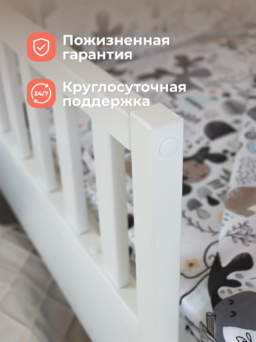 Растущая кровать (матрас 102076531648, ящик 4441082516, бортики 4441083329, постельное белье в комплектацию не входят, приобретаются отдельно)