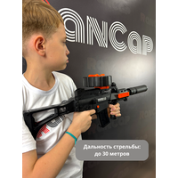Этот орбибольный пистолет-пулемёт сочетает реалистичный внешний вид, автоматический режим стрельбы, высокую скорострельность и удобную конструкцию — включая складывающийся приклад и светящийся глушитель с 8 режимами подсветки. Винтовка стреляет гидрогелевыми шариками (орбизами) на дистанцию до 30 метров, обеспечивая стабильную и мощную стрельбу.