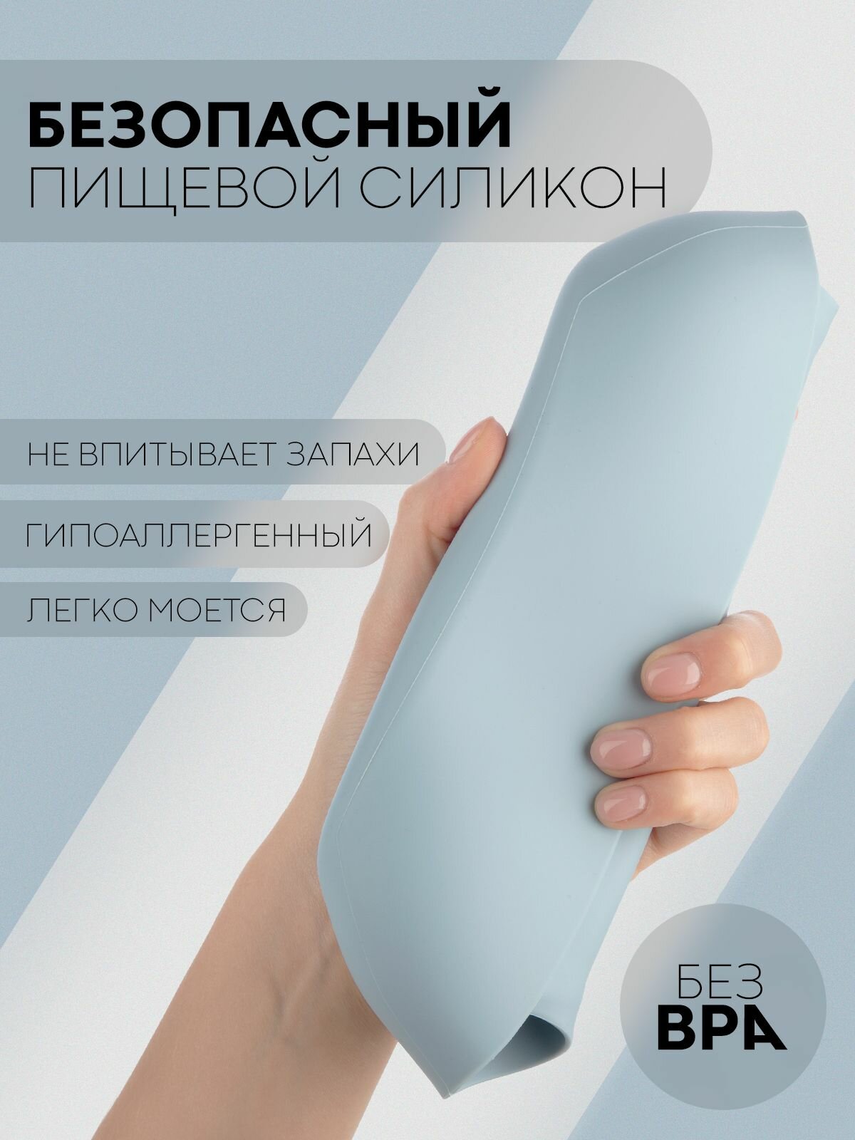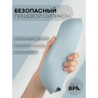 Слюнявчик силиконовый (фартук) имеет регулировку для изменения размера на шее, а так же карман для остатков пищи, который сохранит одежду ребенка чистой.