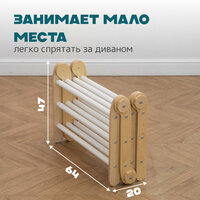 Габариты зависят от положения, в котором собрана система трансформер. В классической сборке в виде домика Трансформер S имеет размеры 64х58х77 см. Размер горки 32х90 см. Максимальная длина в разложенном виде - 162 см. Общее количество перекладин - 12 шт.