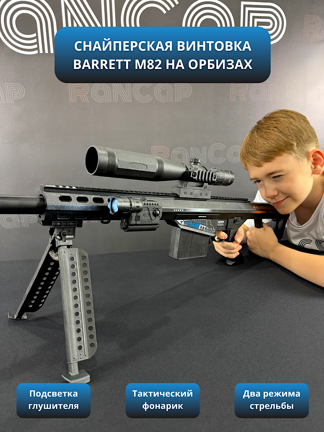 Детская снайперская винтовка BARRETT M82 на орбизах с оптическим прицелом, фонариком и сошками, подсветка 8 цветов: сравнение цен, характеристики, фото, актуальное наличие и цены.