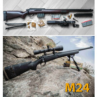Купить Детская снайперская винтовка М24 с прицелом и реалистично вылетающими гильзами на мягких пулях EWA с доставкой по всей России.
