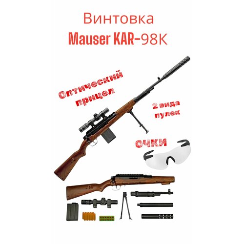 Винтовка Mauzer (Маузер) KAR98k – игрушечное оружие с пневматическим принципом работы, оно обустроено оптическим прицелом и выглядит как настоящая винтовка для снайперов.