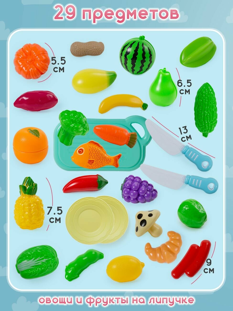 Овощи и фрукты на липучке созданы для маленьких кулинаров, которые обожают подражать взрослым. В комплекте:
