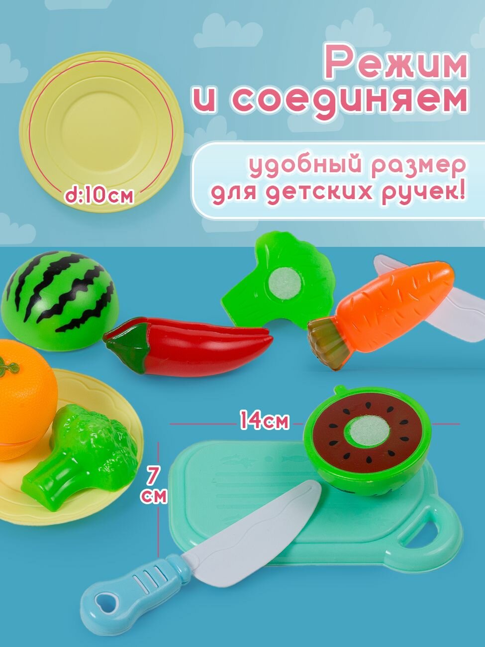 Продукты игрушечные помогают развивать мелкую моторику и координацию движений, тренируя пальчики ребенка в процессе разрезания и соединения.