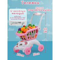 Тележка (50×36×25 см) — с яркой подсветкой ручки и 12 весёлыми мелодиями (работает от 2 батареек АА, не входят в комплект);