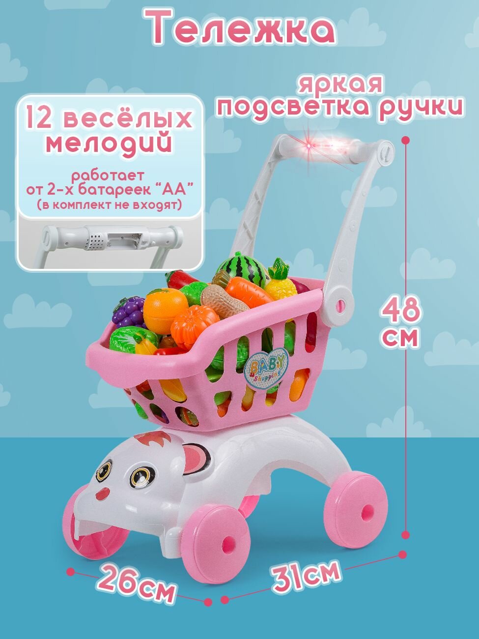 Игрушечная еда и тележка для продуктов детская — станут отличным дополнением к игрушечной кухне, детской посуде и сюжетным играм.