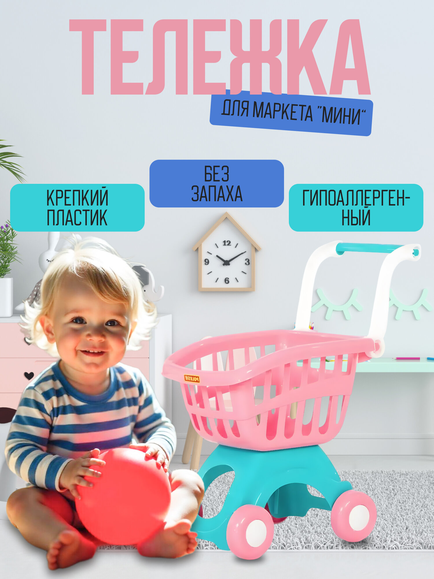 Детская тележка для продуктов супермаркета «Мини» (v2), (розовый/бирюзовый) 71279: сравнение цен, характеристики, фото, актуальное наличие и цены.