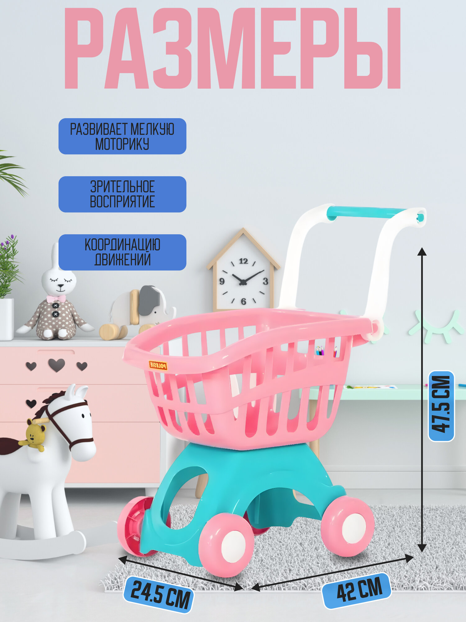Купить Детская тележка для продуктов супермаркета «Мини» (v2), (розовый/бирюзовый) 71279 с доставкой по всей России.