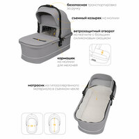 | Комплектация | адаптеры для крепления автокресла, анатомическая подушка, антимоскитная сетка, бампер, капюшон, матрас, накидка на ноги, подстаканник, рюкзак, солнцезащитный козырек |