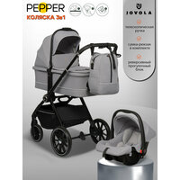 Купить Детская универсальная коляска 3 в 1 Jovola Pepper, всесезонная, реверсивный блок, светло-серый с доставкой по всей России.