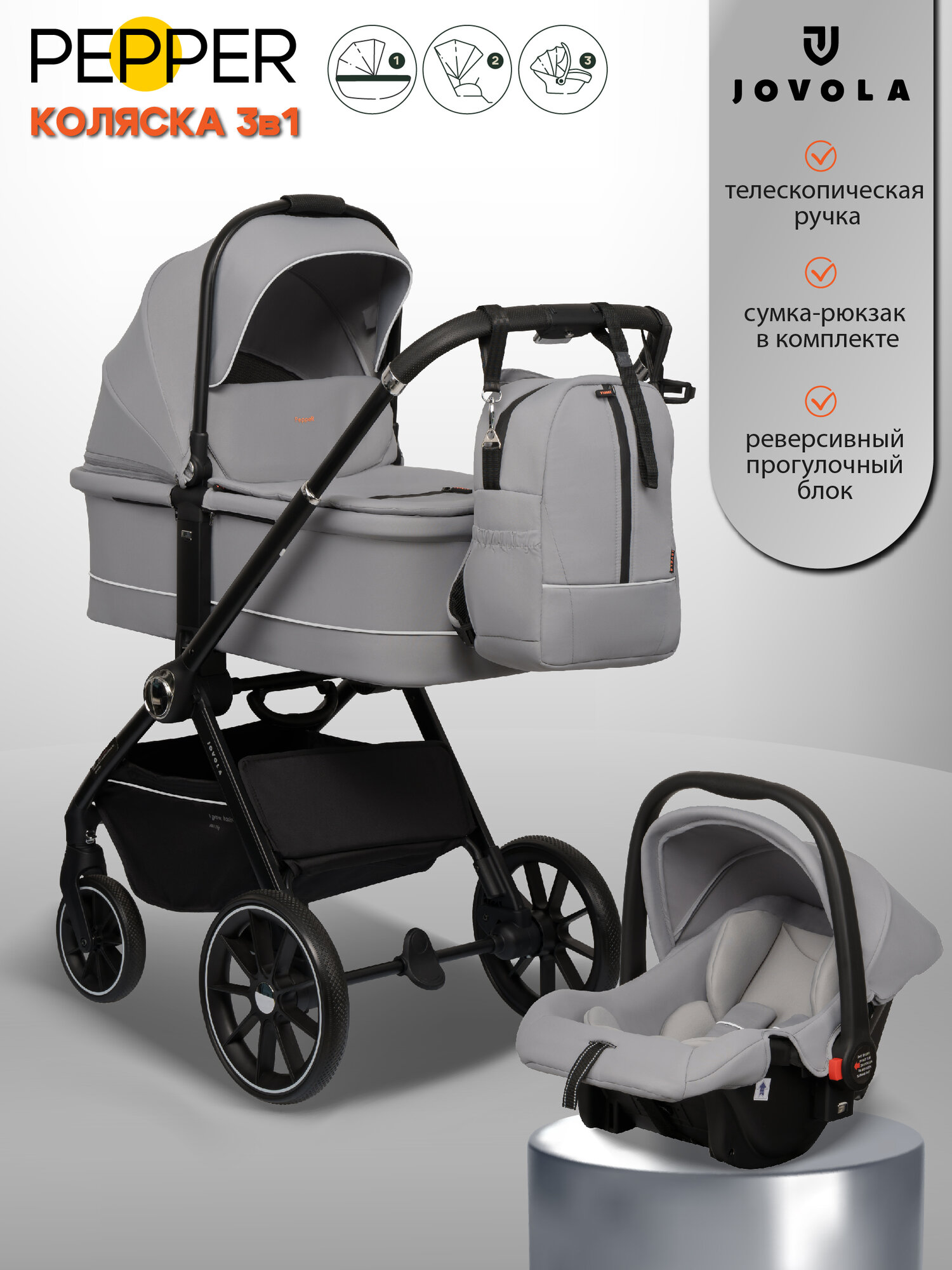 Детская универсальная коляска 3 в 1 Jovola Pepper, всесезонная, реверсивный блок, светло-серый: сравнение цен, характеристики, фото, актуальное наличие и цены.