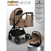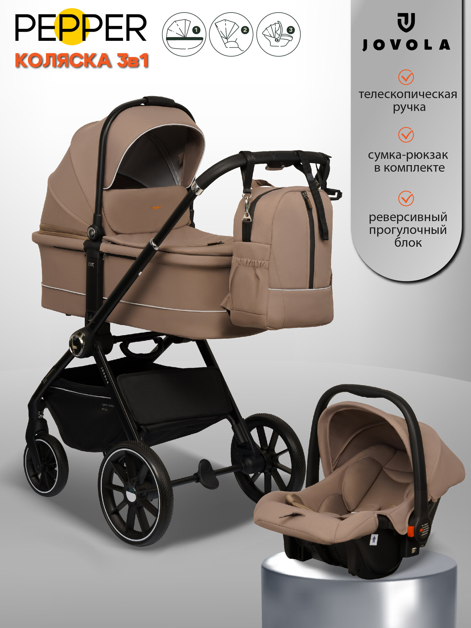 Купить Детская универсальная коляска 3 в 1 Jovola Pepper, всесезонная, реверсивный блок, темно-бежевый с доставкой по всей России.