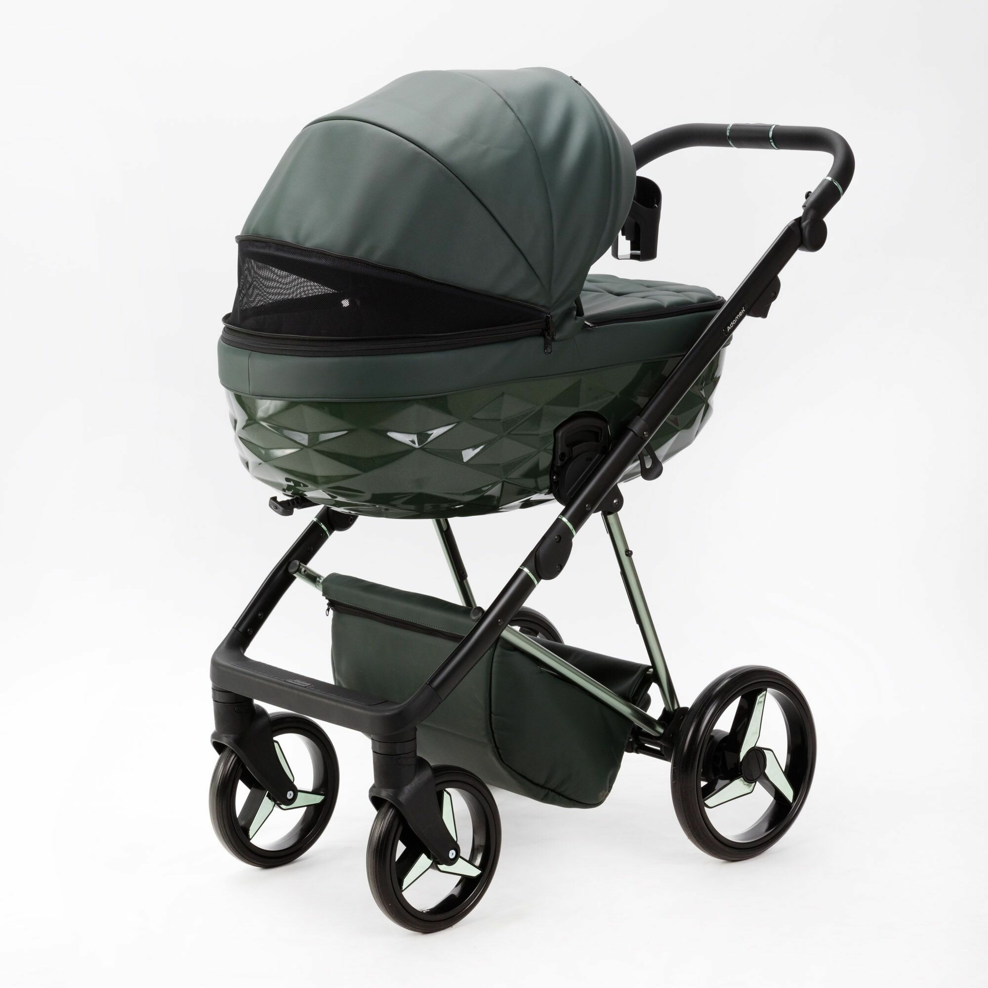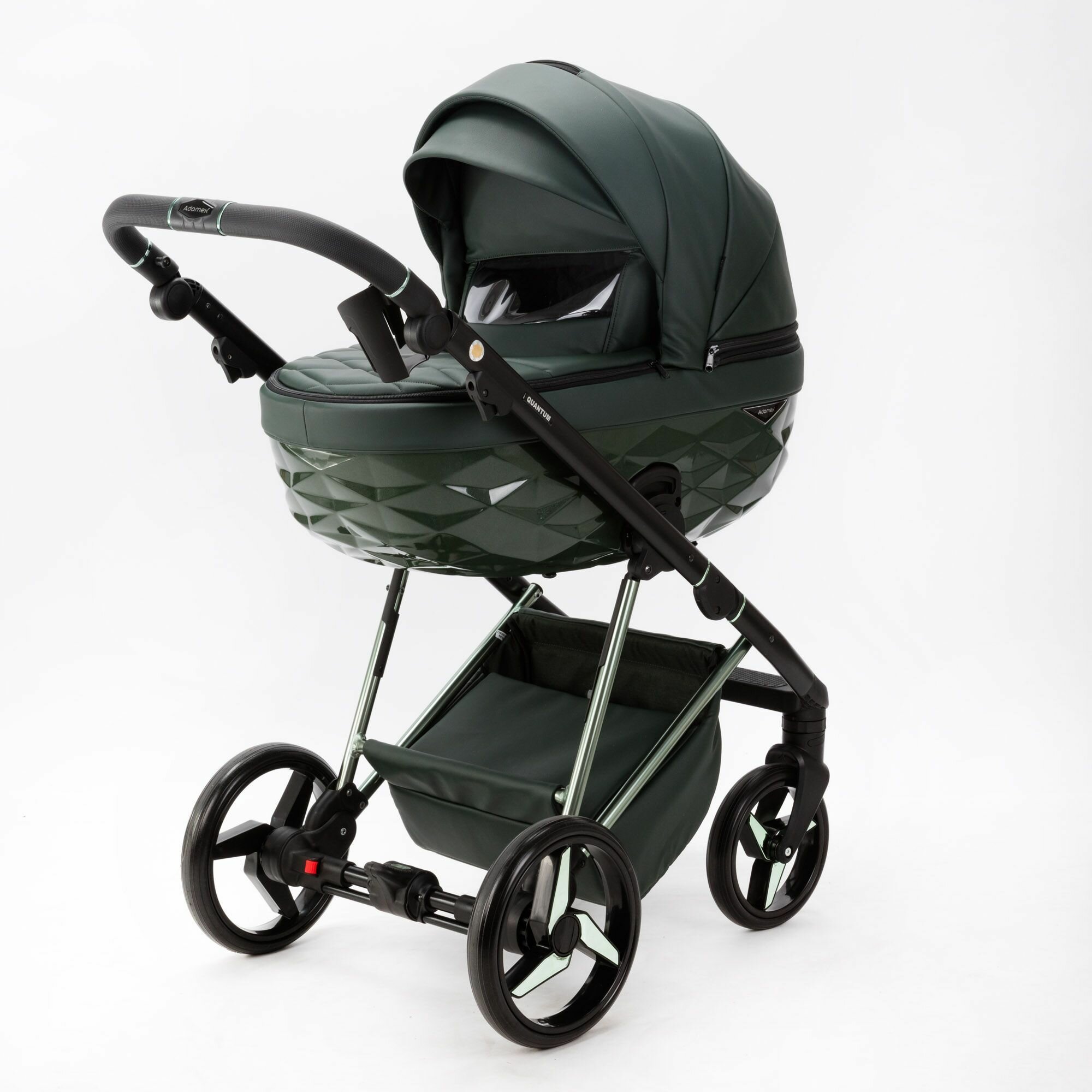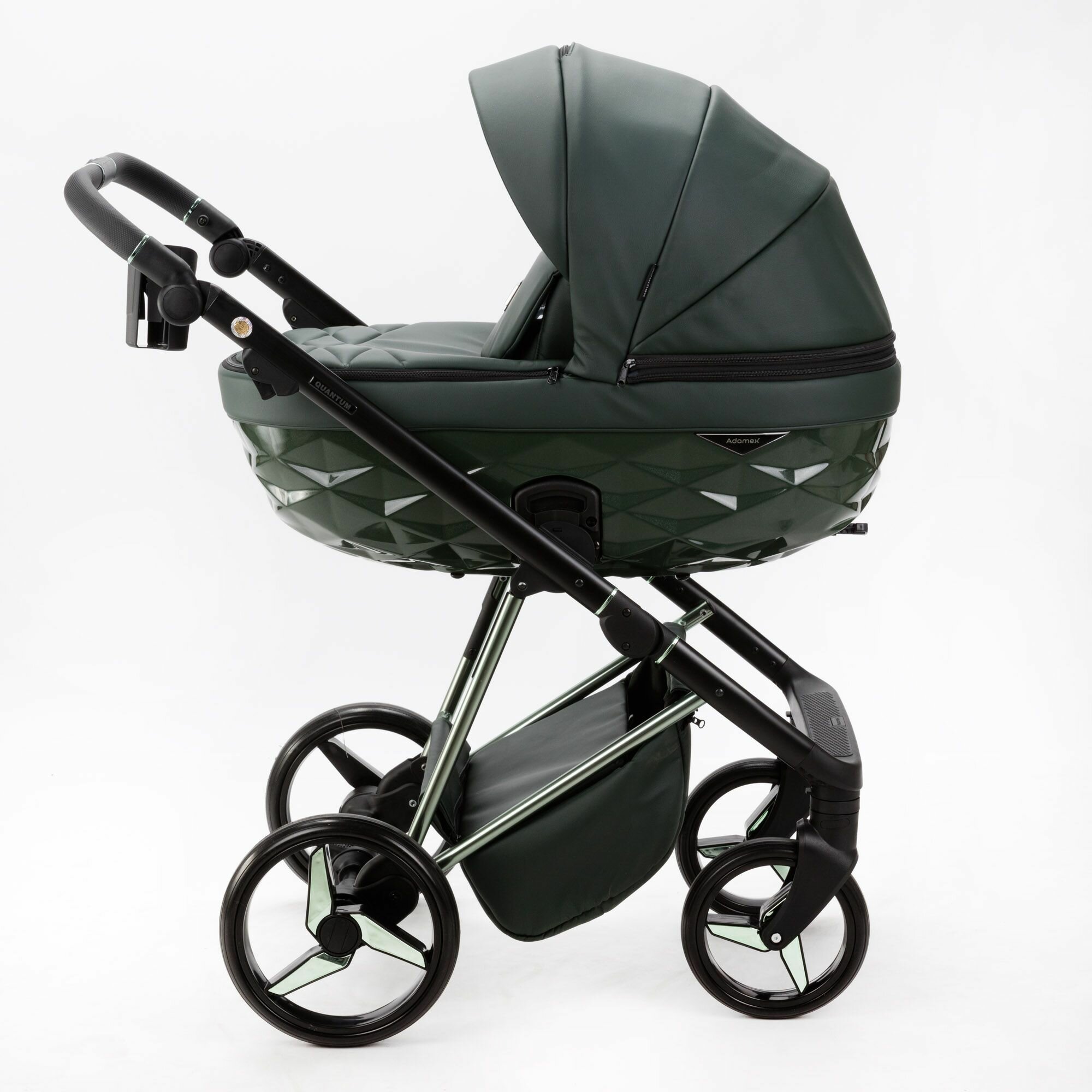 Купить Детская универсальная коляска Adamex Quantum SuperStar Q-STAR140 (2в1) Тёмно-зеленая экокожа, хром с доставкой по всей России.