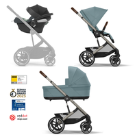 В комплектацию 3в1 входит автолюлька Cybex Aton B2 i-Size. Автолюлька используется с рождения, она может переставляться с коляски в автомобиль. Форма спинки автокресла повторяет изгибы тела вашего малыша, что обеспечивает удобство даже в долгих поездках. Люлька оборудована встроенными ремнями безопасности, а для защиты от непогоды есть большой козырек.