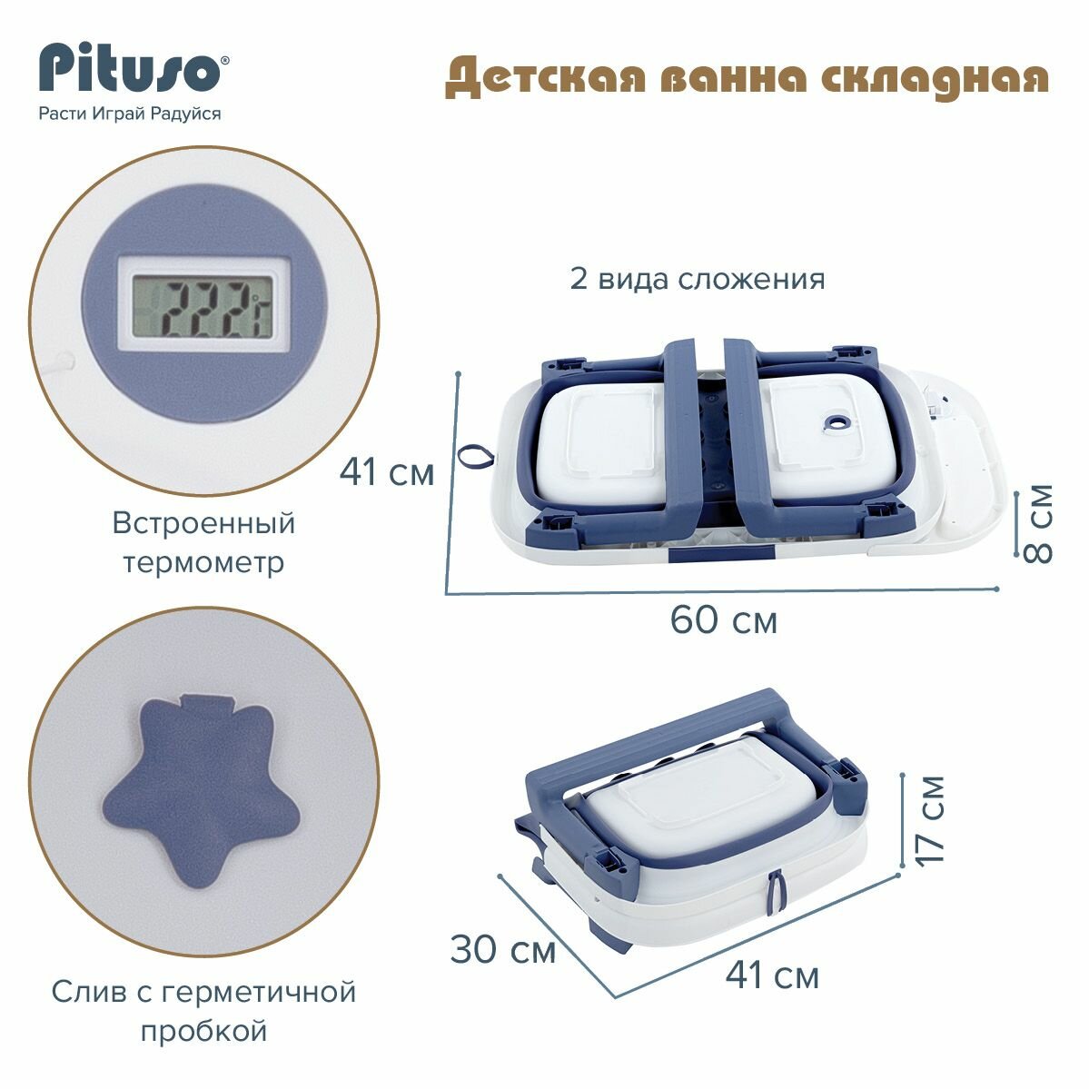 Купить Детская ванна складная Pituso двойное сложение (встроенный термометр) Blue/Синий с доставкой по всей России.