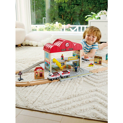 Этот компактный и удобный набор позволит вашим детям насладиться неограниченными возможностями для игры и познания мира путешествий прямо на ходу. Набор включает миниатюрную железнодорожную станцию с фигурками пассажиров и сотрудников, позволяющими разыгрывать разнообразные сценарии.
