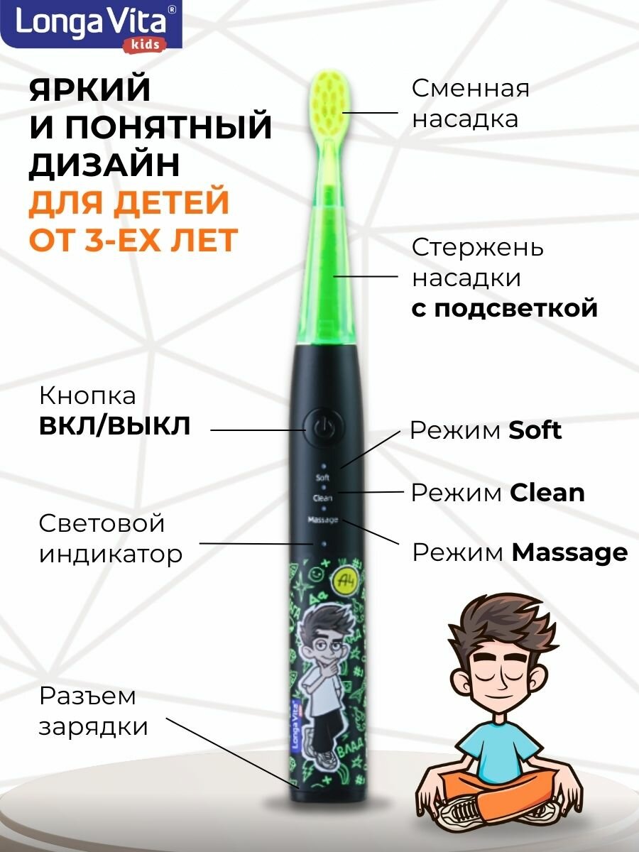 Купить Детская зубная щетка Longa Vita Влад А4, звуковая, 24000 пульсаций в мин, 6 режимов с доставкой по всей России.
