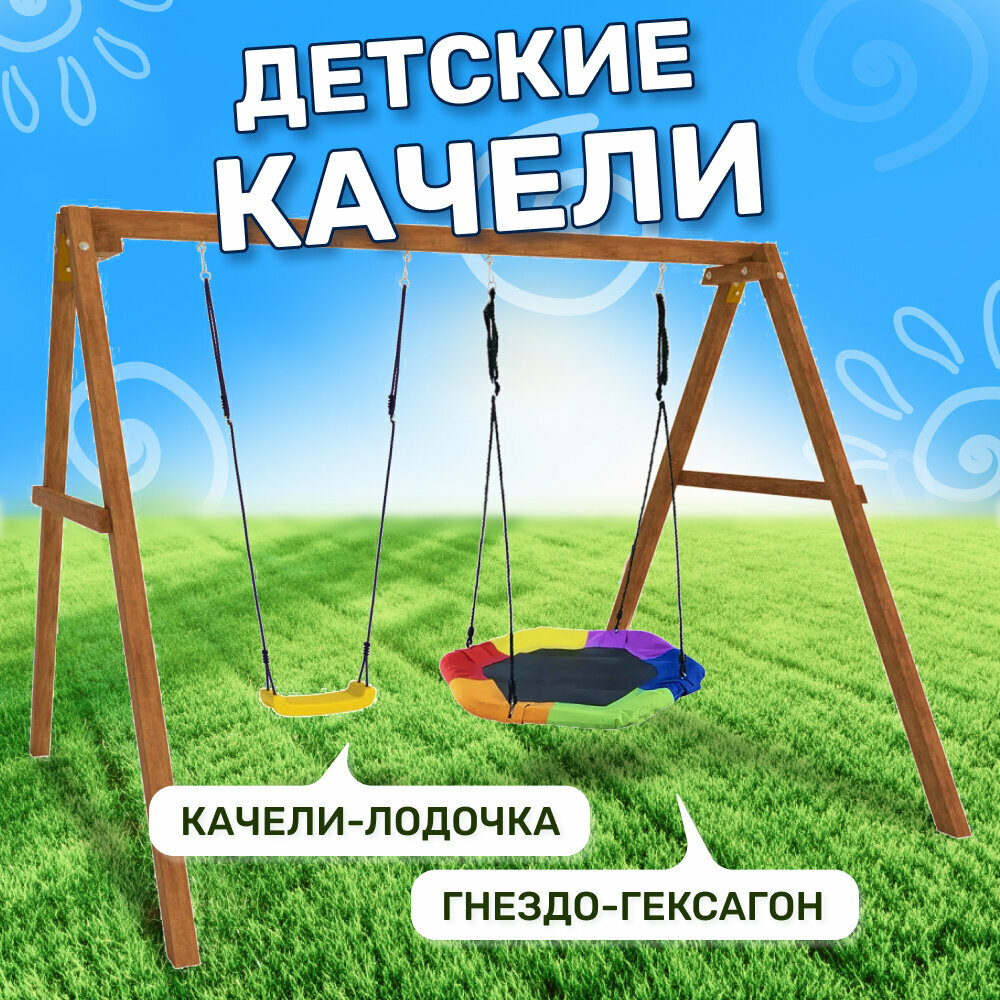 Детские деревянные качели National Tree Company с лодочкой и гнездом Гексагон, уличные подвесные качели для дачи: сравнение цен, характеристики, фото, актуальное наличие и цены.