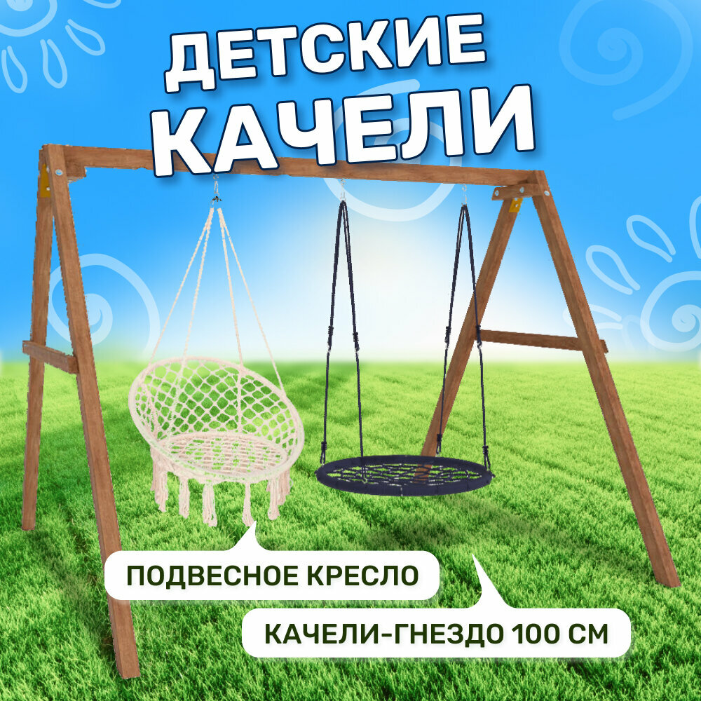 Детские деревянные качели National Tree Company с подвесными креслами и гнездом 100 см, уличные качели для дачи: сравнение цен, характеристики, фото, актуальное наличие и цены.
