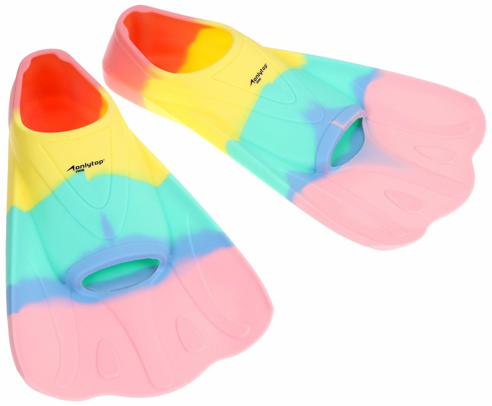 Купить Детские ласты силиконовые ONLYTOP с закрытой пяткой, короткие, для подводного плавания, дайвинга, снорклинга, бассейна и моря, в мешке-сетке, размер 33-35, цвет радужный с доставкой по всей России.