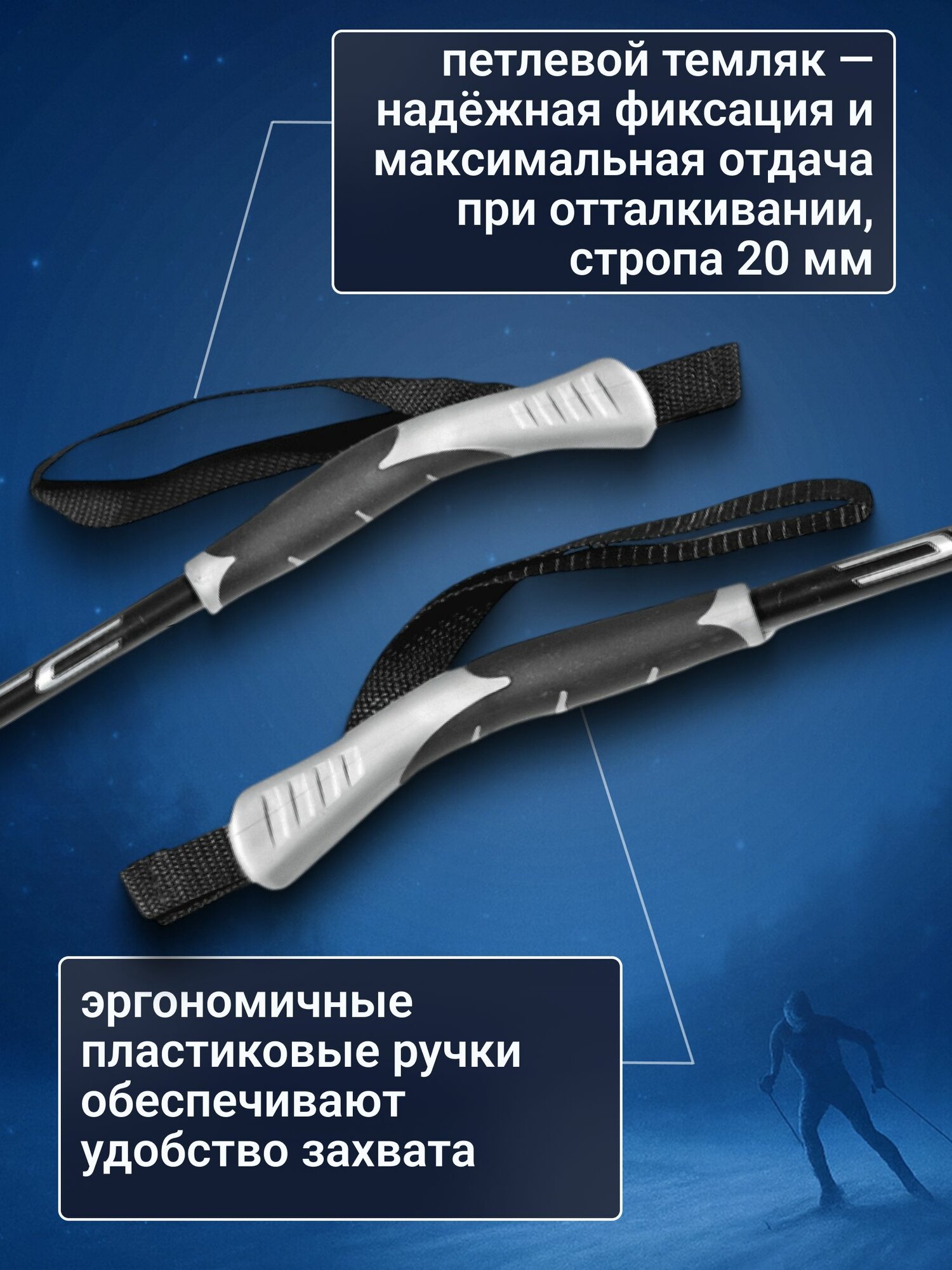 Детские лыжные палки STC X-TOUR алюминий эконом — универсальные палки для прогулок, туризма и тренировок. Лыжные палки для детей STC X-TOUR — это практичное и надёжное решение для детей и подростков, которые выбирают активный зимний отдых, прогулочное катание и туристические лыжные маршруты. Модель универсальна и подходит как для классического, так и для конькового хода. Древко изготовлено из алюминиевого сплава T6061, который сочетает малый вес, прочность и устойчивость к деформациям. Палки хорошо переносят нагрузки, не боятся ударов и сохраняют геометрию при регулярной эксплуатации на укатанных трассах и в условиях рыхлого снега. Диаметр трубки 16 мм в верхней части и 10 мм в нижней обеспечивает правильный баланс, устойчивость и эффективную передачу усилия при отталкивании. Эргономичная рукоятка PM-РГ-28 выполнена из морозостойкого пластика, удобно лежит в руке и не скользит даже при длительном катании. Темляк-стропа шириной 20 мм надёжно фиксирует палку на запястье, снижает нагрузку на кисти и повышает контроль движений. Туристическая лапка ОС-11 и металлический наконечник обеспечивают уверенное сцепление со снегом и льдом, что особенно важно на сложных участках маршрута. Современный дизайн с прямой печатью и чёрным цветом делает палки универсальными и аккуратными внешне. Для классического хода рекомендуется выбирать палки на 25–30 см ниже роста, для конькового — на 15–20 см ниже роста. Преимущества - Прочный алюминиевый сплав T6061 - Лёгкая и устойчивая конструкция - Универсальны для классического и конькового хода - Эргономичная морозостойкая рукоятка - Надёжный темляк-стропа 20 мм - Металлический наконечник с хорошим сцеплением - Туристическая лапка для разных условий - Подходят для детей и подростков Лыжные палки STC X-TOUR — это надёжный и доступный вариант для регулярных прогулок, туристических походов и тренировок. Они обеспечивают уверенное отталкивание, комфорт и долговечность без переплаты, делая зимний отдых удобным и безопасным.