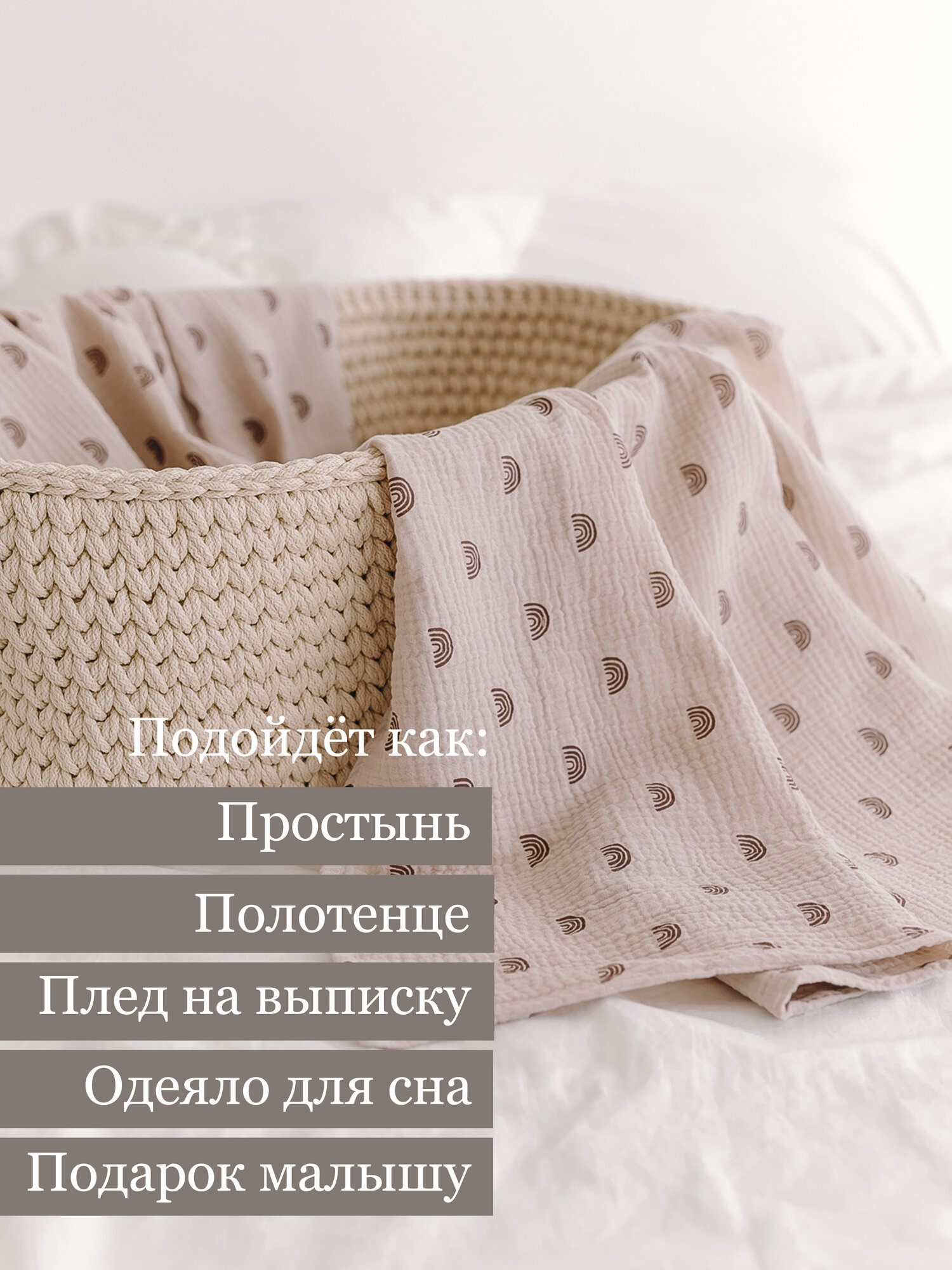 Натуральная хлопковая многоразовая пеленка для новорожденных большого размера 90*130 см - выбор заботливых мам! Она подходит для пеленания грудничков в кокон, застилания кровати или коляски, а также в качестве полотенца после купания детей. Мягкие, впитывающие пеленальные пледы изготовлены из натурального хлопка, который пропускает воздух и позволяет коже малыша дышать. Оригинальный узор крестильной пеленки подходит как девочкам, так и мальчикам. Использовать текстильный конверт можно во время выписки из роддома, в домашних условиях и на улице, в любое время года. В отличие от одноразовой, края данных пеленок аккуратно подогнуты, что обеспечивает дополнительный комфорт и безопасность применения. Детские муслиновые пеленки - это полезный подарок на выписку из роддома, подарок новорожденному. Они сохранят цвет и форму в течение длительного пользования. Фланелевые и муслиновые пеленки изготовлены с любовью и заботой к вашим грудничкам!