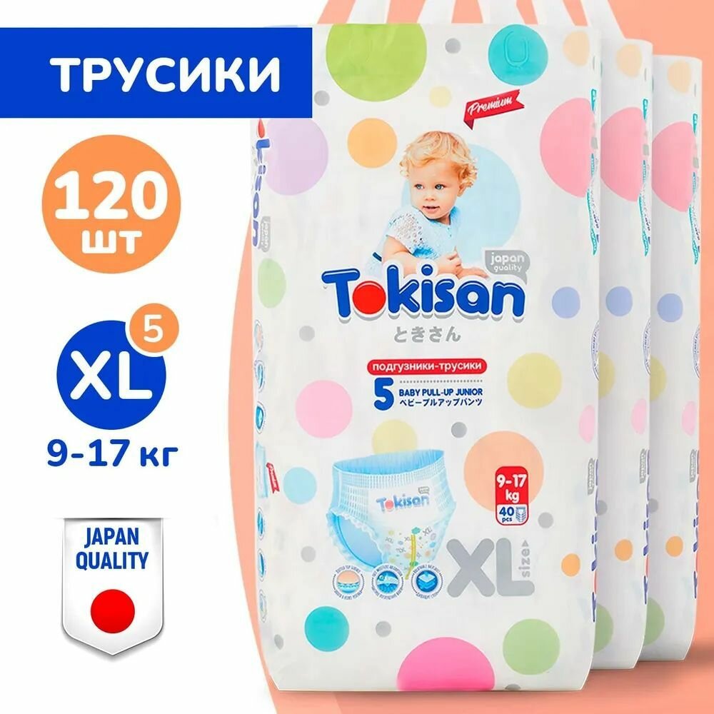 Купить Подгузники трусики детские Tokisan для малышей 9-17 кг, размер 5 / XL, 40 шт, дневные, ночные, японская технология, комплект 3 уп. с доставкой по всей России.