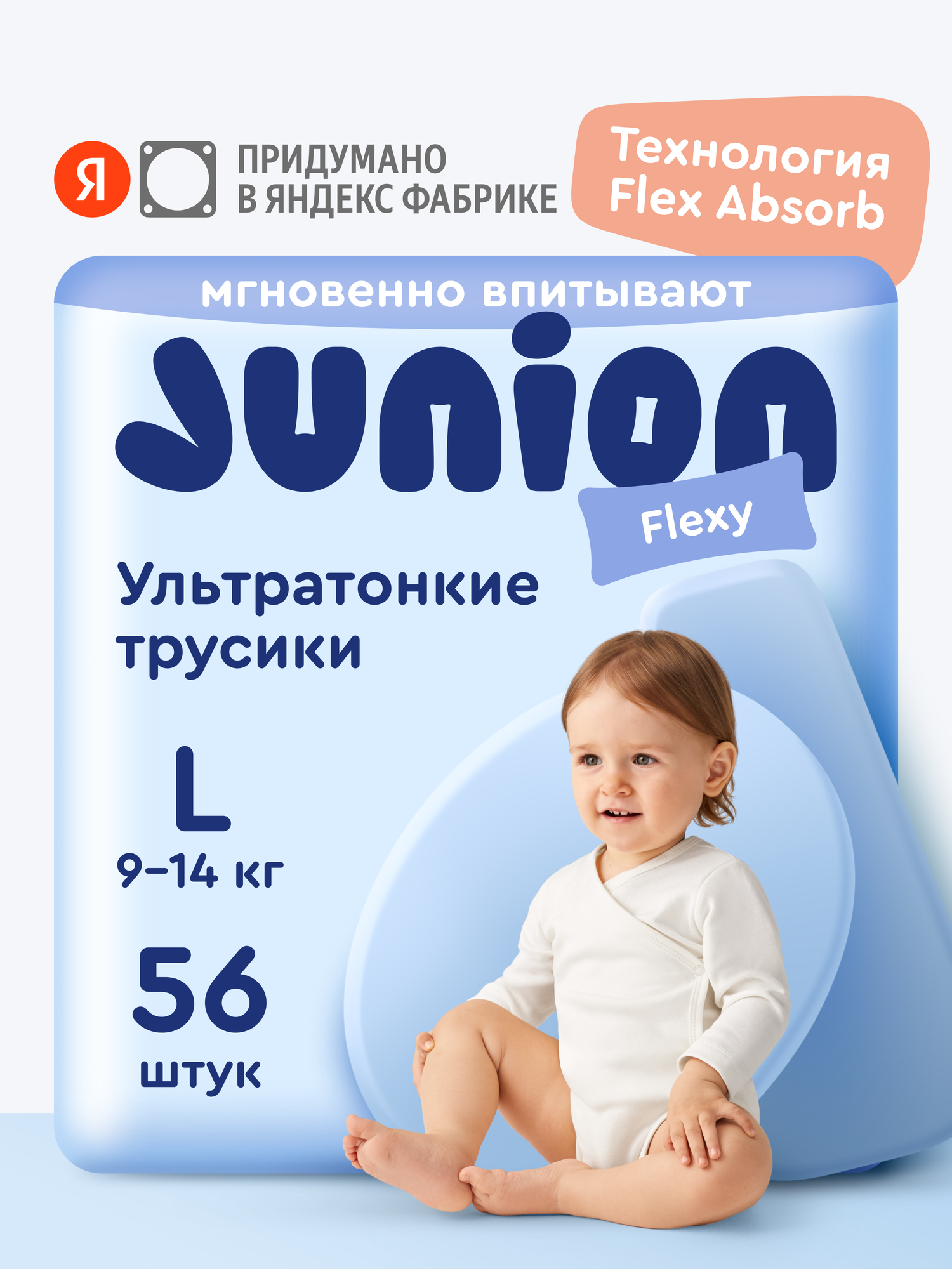 Детские подгузники трусики Junion Flexy размер L (9-14 кг), 56 шт, ультратонкие: сравнение цен, характеристики, фото, актуальное наличие и цены.