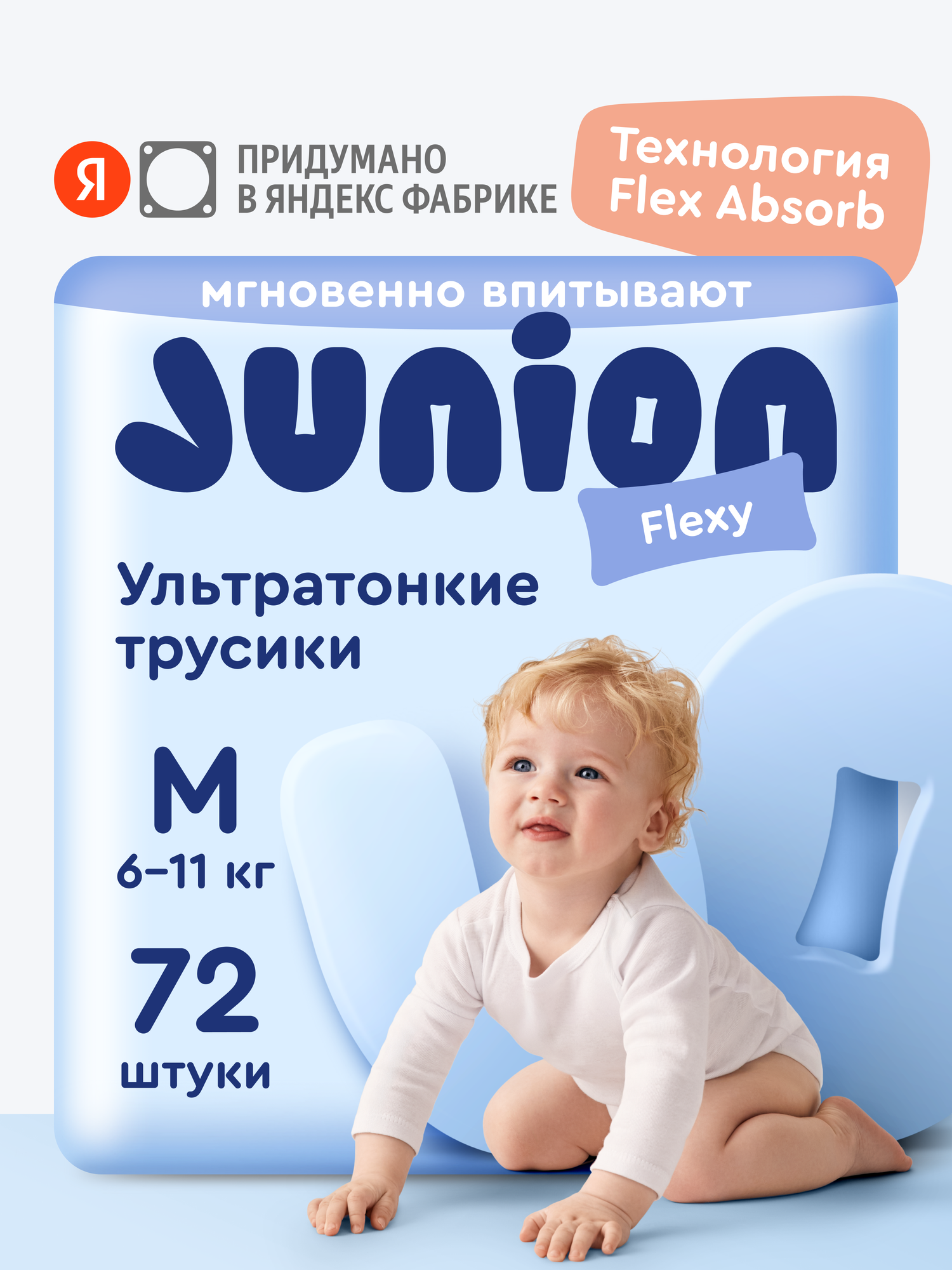 Детские подгузники трусики Junion Flexy размер M (6-11 кг), 72 шт, ультратонкие: сравнение цен, характеристики, фото, актуальное наличие и цены.