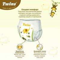 Twins / Твинс L – качественные детские подгузники-трусики для деток весом 11-16 кг. Современные материалы, суперабсорбирующий слой и дышащая поверхность делают их максимально комфортными для малыша. Внутренний слой небольшой толщины отлично впитывает и распределяет жидкость, а двойные манжеты и эластичная спинка надежно защищают от протеканий. Специальный индикатор на подгузнике меняет цвет, когда памперс нужно заменить. Трусики быстро надеваются и снимаются, помогая малышу самостоятельно пользоваться горшком. В подгузниках-трусиках удобно ползать, играть и активно изучать мир вокруг. Экономичная упаковка 54 шт подойдет для тех, кто уже оценил преимущества трусиков Twins. Качественный продукт по доступной цене. Подгузники-трусики Twins помогут сохранить не только комфорт малыша и спокойствие мамы, но и семейный бюджет!