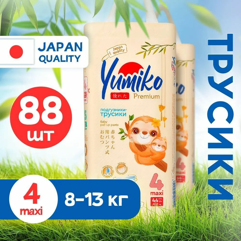 Купить Подгузники трусики детские Yumiko размер 4, L 88 шт для мальчиков и девочек, японские эко памперсы дневные / ночные одноразовые, гипоаллергенные, ультратонкие с доставкой по всей России.
