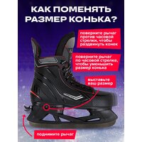 Раздвижные хоккейные коньки Legion от компании TechTeam настоящий подарок для родителей! Экономия средств! Их отличительная особенность – возможность менять размер ботинка. Раздвижные коньки прослужат гораздо дольше, ведь ботинок можно увеличить на 4 размера, и он всегда будет по ноге. Для определения размера коньков, рекомендуем воспользоваться следующими данными: размер 31-34- раздвигается с 19 см до 20,5 см, размер 35-38 - раздвигается с 21,5 см до 23см, размер 39-42 - раздвигается с 25,2 см до 25 см. Простота в использовании. Изменить размер ботинка очень просто. На подошве ботинка расположен фиксатор. Ослабив его, можно выбрать размер по ноге ребенка. Повернув еще раз механизм, нужно зафиксировать полученный результат. Один из основных плюсов раздвижных коньков – удобство. Они мягкие внутри, покрыты приятным текстилем. При катании на них не возникает болевых ощущений. Легкость. Раздвижные модели самые легкие по весу. Кататься на них легче, ноги устают гораздо меньше. Утепленный ботинок. Коньки подходят для катания на открытом воздухе, внутри ботинок утеплен. Даже при отрицательных температурах ноги в нем не будут мерзнуть. Достаточно будет надеть тонкие носки. Удобная застежка. Простая система фиксации облегчает надевание и регулировку коньков. Надежная конструкция. Сам ботинок изготовлен из синтетических материалов, которые хорошо переносят перепады температур, имеют защиту от влаги. По его бокам установлены пластиковые накладки. Они образуют прочный каркас, защищая ноги от ударов и травм. Также для придания ботинку необходимой жесткости носок и пятка делаются утолщенными. Практичные лезвия. Лезвия изготавливаются из нержавеющей стали и не нуждаются в частой заточке. После каждого использования протирать лезвия сухой тканью во избежание появления ржавчины. Чехол для лезвий в комплекте.