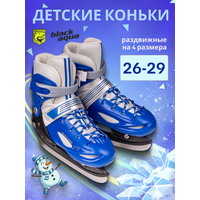 Коньки раздвижные BlackAqua AS-405 – идеальный выбор для детей и подростков. Эти детские коньки подойдут для девочки и мальчика, кто только начинает кататься или уже уверенно держится на льду. Регулируемый размер делает их отличным подарком – коньки прослужат несколько сезонов. Технические характеристики: • Материал верха: нейлон, синтетический материал, ударопрочный пластик. • Внутренний материал: мягкий утеплитель из искусственных материалов. • Фиксация: быстрая шнуровка, ремень с липучкой Velcro, клипса с системой памяти. • Лезвие: нержавеющая сталь, не требует частой заточки. • Регулировка размера: на 4 позиции, легко подстраивается под растущую ногу. • В комплект входит пара коньков и брендированная сумка-чехол. Наличие сумки упрощает транспортировку и сезонное хранение инвентаря, защищая его от пыли и механических повреждений. Ботинки детских коньков мягкие, как кроссовки, с отличной поддержкой голеностопа благодаря прочному каркасу. Надеваются без усилий, надежно фиксируются для безопасного катания. Ключевые преимущества: • Регулируемый размер на 4 ступени – экономия на покупках на годы вперед. • Комфортные мягкие ботинки с утеплителем – ноги не мерзнут и не натирают. • Прочное нержавеющее лезвие – острое катание без заточки весь сезон. • Быстрая и точная фиксация стопы клипсой, липучкой и шнуровкой – надеваются за секунды. • Универсальный дизайн для девочек и мальчиков. Катание на этих коньках принесет детям массу эмоций на катке.