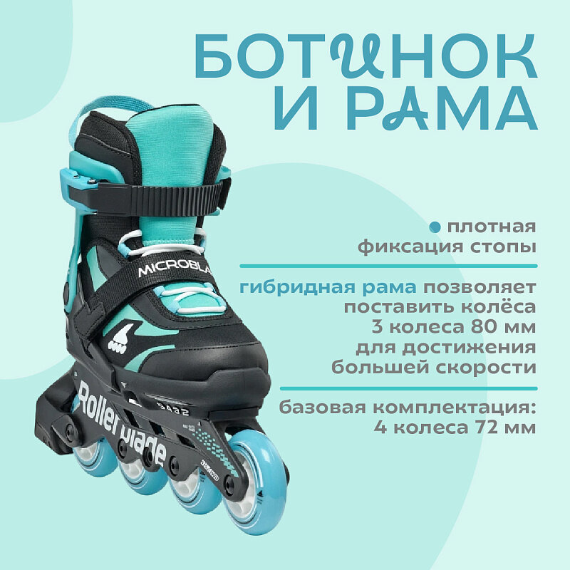 Детские раздвижные ролики Rollerblade Microblade — Black/Light Blue р. 28-32: сравнение цен, характеристики, фото, актуальное наличие и цены.