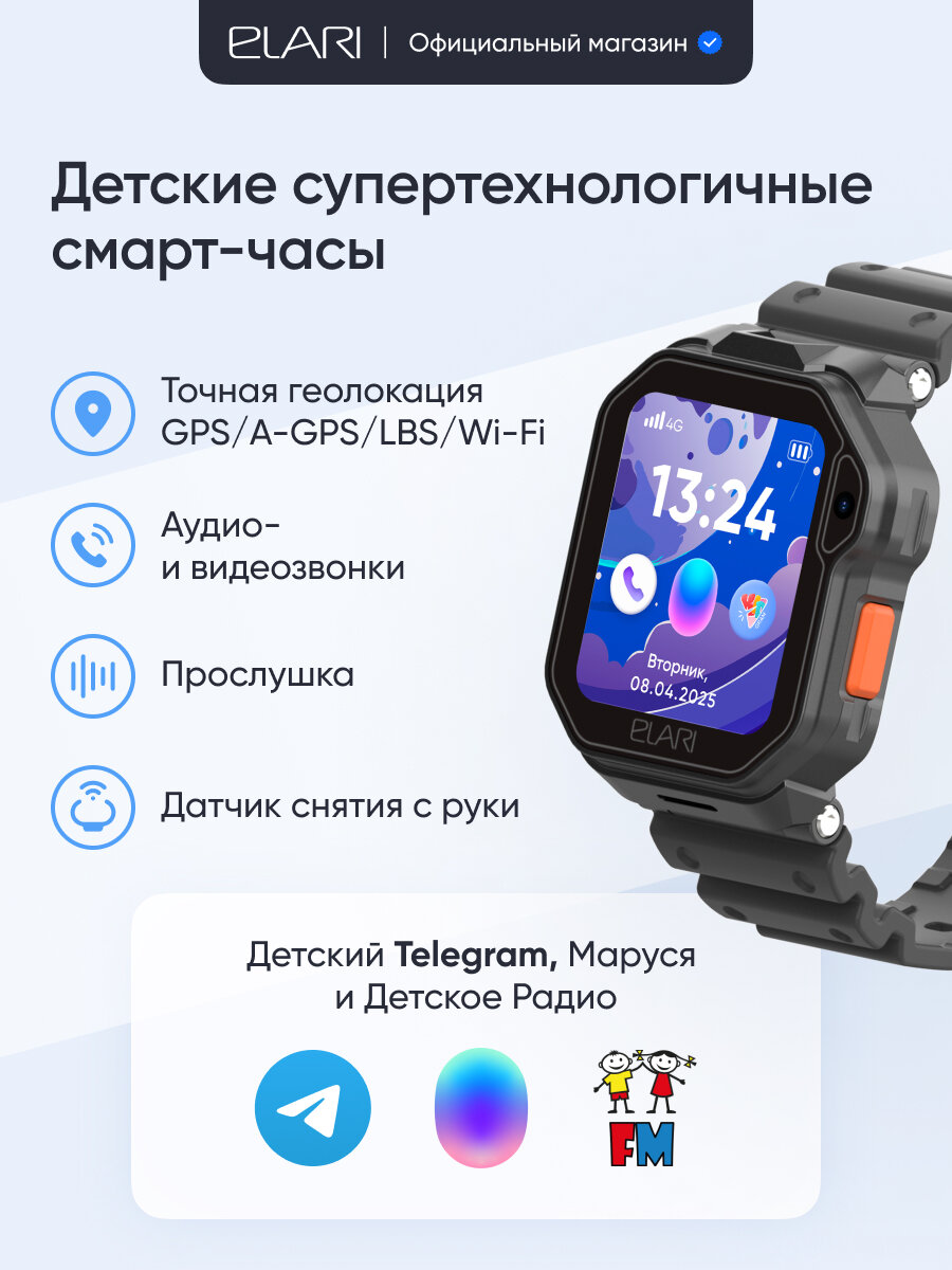 Детские смарт-часы ELARI KidPhone Techno 4G. Цвет: черный: сравнение цен, характеристики, фото, актуальное наличие и цены.