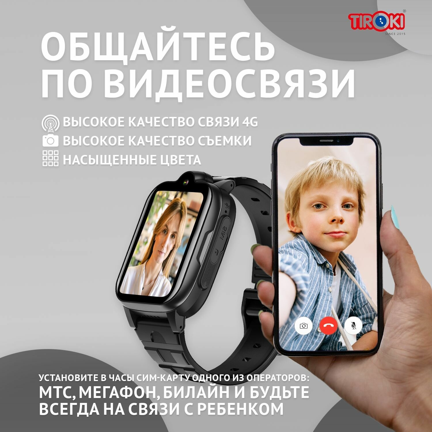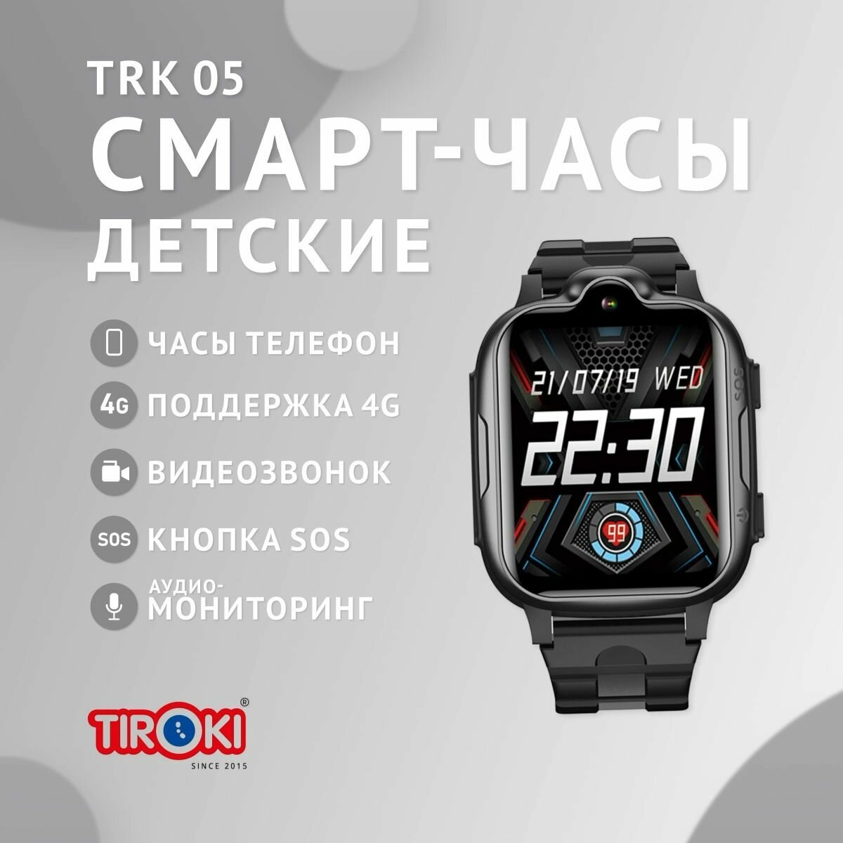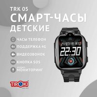 TIROKI TRK-05 с GPS, с HD видеозвонком, сим картой и 4G сотовой связью, кнопкой SOS. Часы работают на встроенной системе Android версии 4.4, имеют память ROM 192 MB, RAM 512 MB.